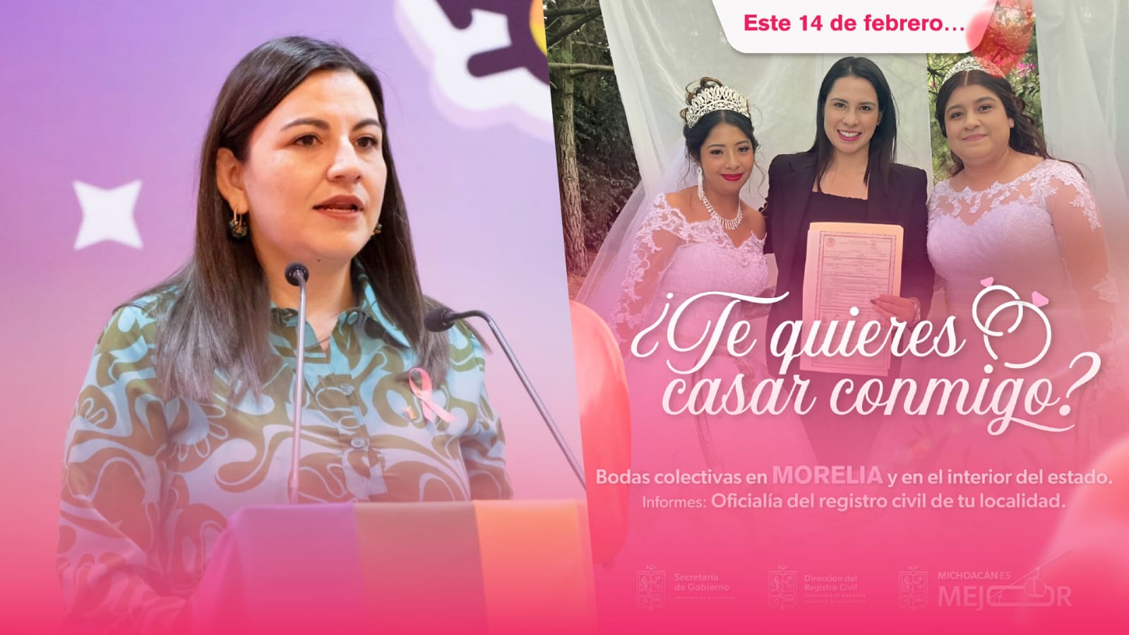 Morelia, Michoacán, a 12 de febrero de 2025.- La Secretaría del Bienestar (Sedebi), a través de la Subdirección para el Bienestar de las Personas LGBTTTIQ+, invita a las parejas de la comunidad diversa a registrarse previamen ... Leer más >>