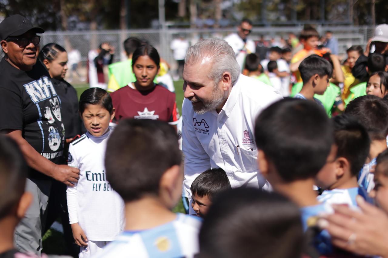 Bedolla comprometido con la paz y la seguridad; inaugura cancha en Quiroga