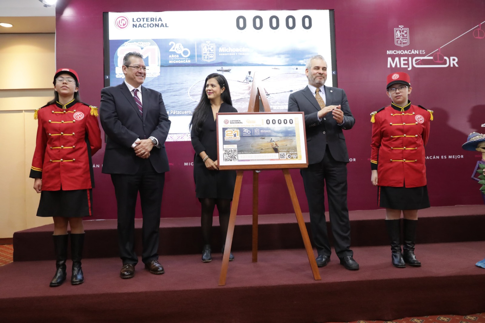 Morelia, Michoacán, a 14 de octubre de 2024.- A la voz del "premio mayor" de las niñas gritonas, el gobernador Alfredo Ramírez Bedolla y el director de la Lotería Nacional, Marco Antonio Mena Rodríguez, develaron el bi ... Leer más >>