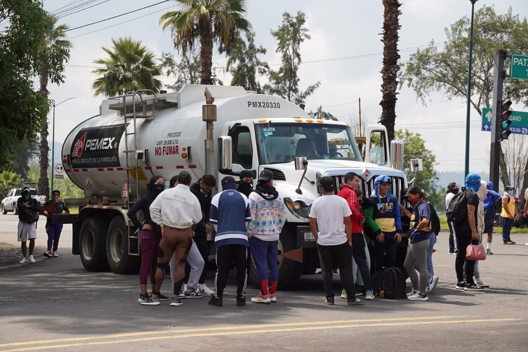 Normalistas se apoderan de camiones y bloquean vialidad en Morelia, Michoacán