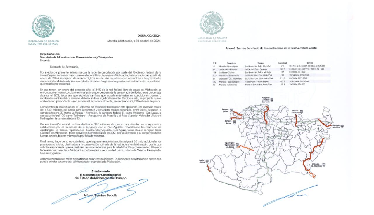 Solicita Bedolla rehabilitación de red carretera federal en Michoacán