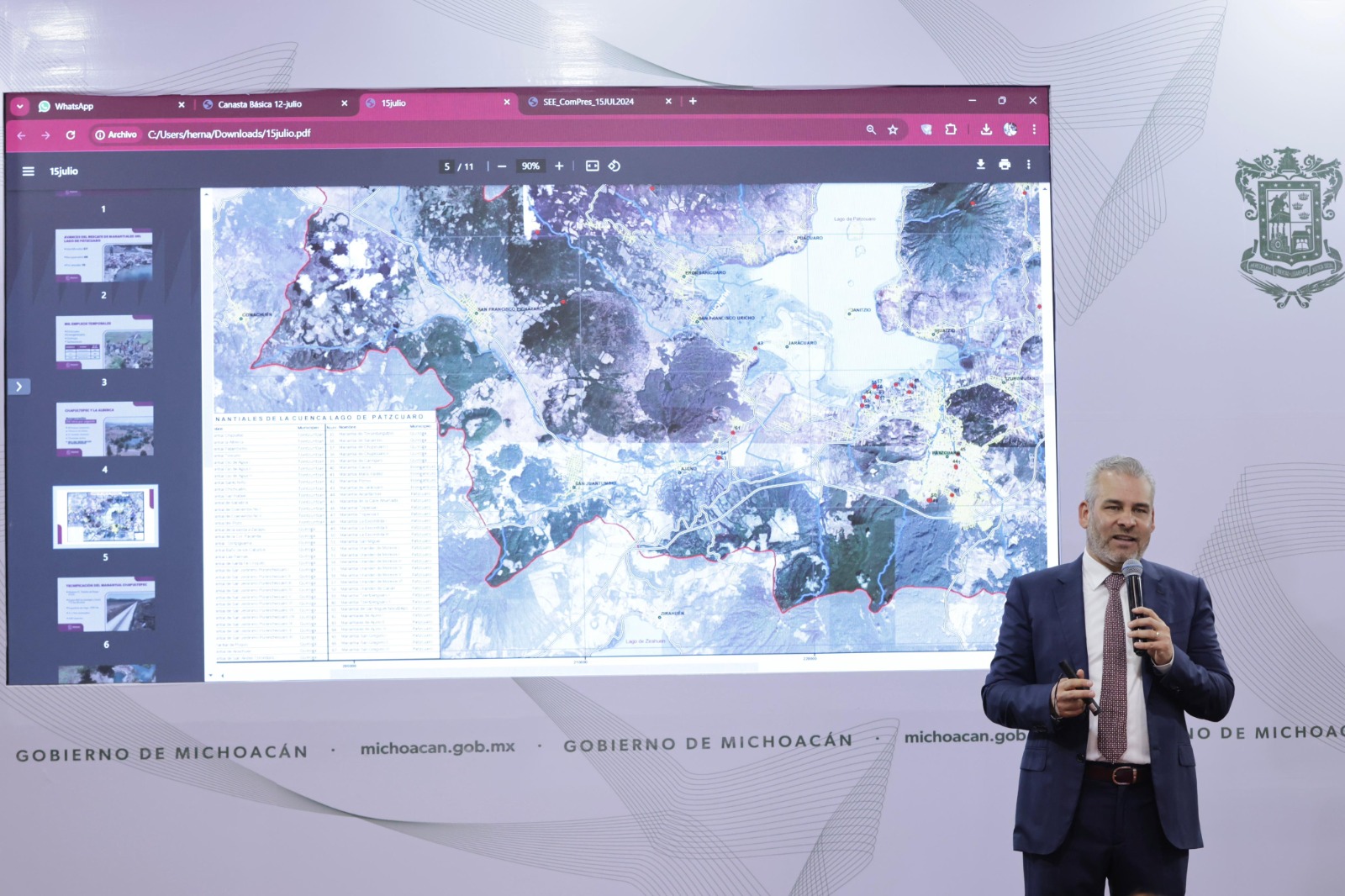 Recuperados 48 de 67 manantiales en la cuenca del lago de Pátzcuaro: Bedolla