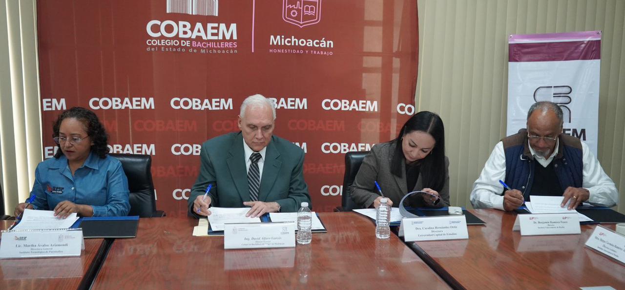 Morelia, Michoacán, a 31 de octubre de 2023.- El Colegio de Bachilleres del Estado de Michoacán (Cobaem), la Universidad Capital de Estudios Superiores, el Instituto Tecnológico de Puruándiro y el Instituto Universitario de P ... Leer más >>