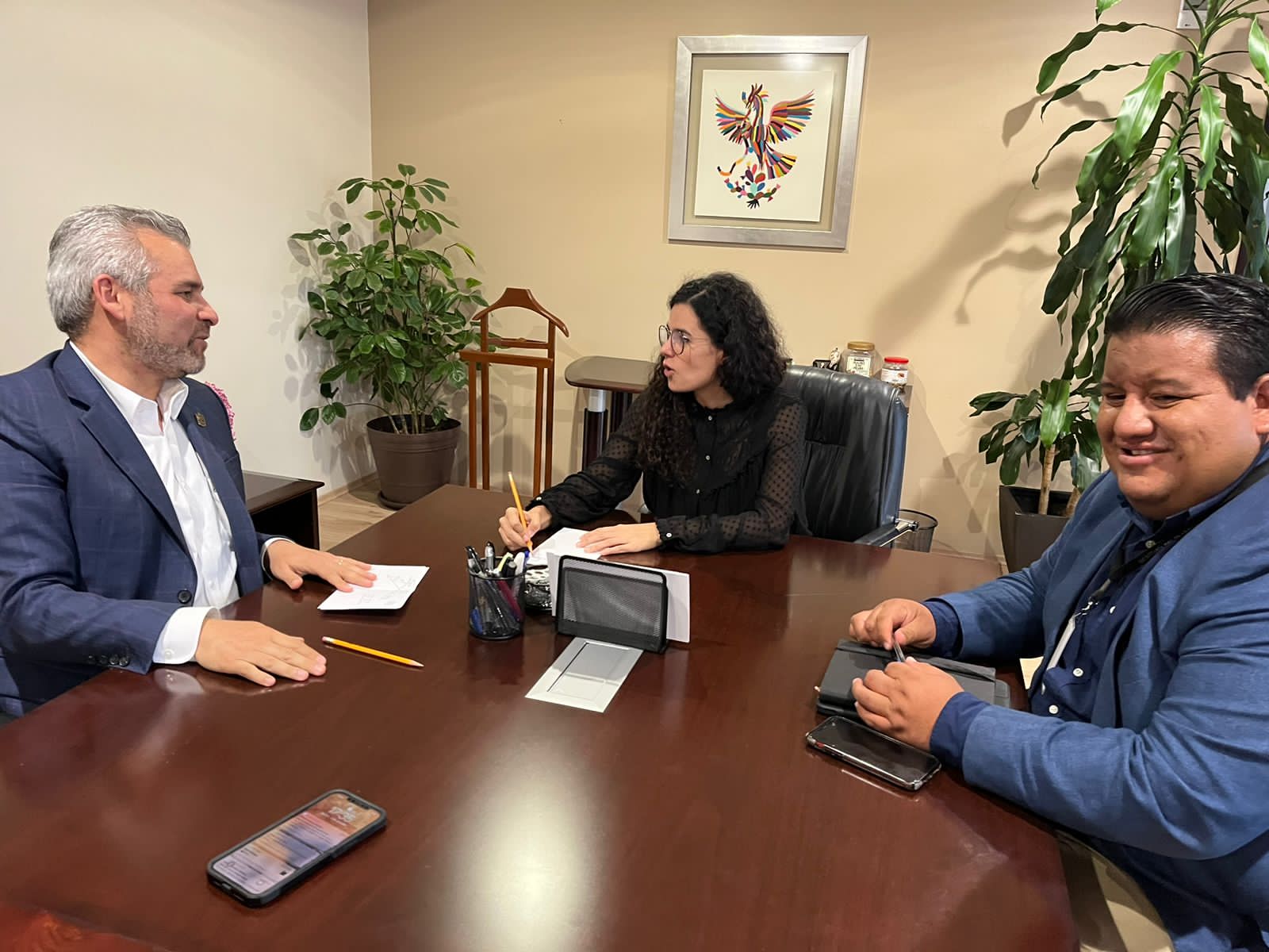 Ciudad de México, a 05 de octubre de 2022.- El gobernador Alfredo Ramírez Bedolla revisó con la secretaria del Trabajo y Previsión Social, Luisa María Alcalde, especificaciones de la propuesta regulatoria para la con ... Leer más >>