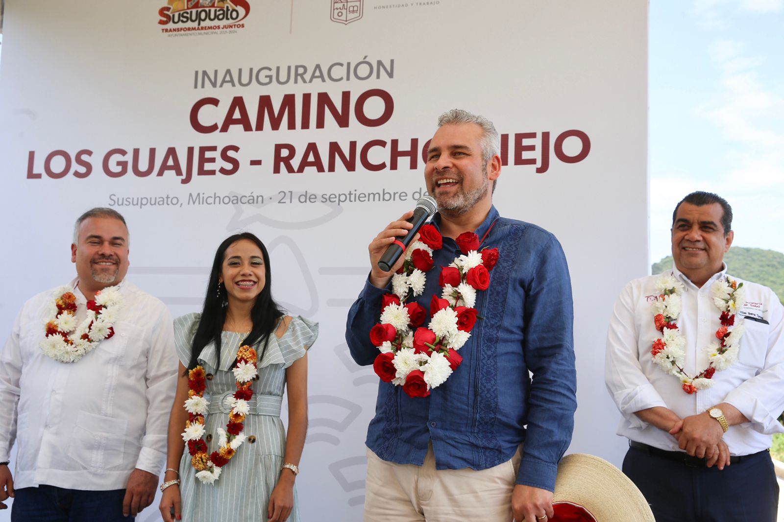 Susupuato, Michoacán, a 22 de septiembre de 2022 .- El gobernador Alfredo Ramírez Bedolla inauguró la pavimentación hidráulica del camino Los Guajes-Rancho Viejo, obra que se ejecutó con 4.9 millones del Fondo de Apor ... Leer más >>