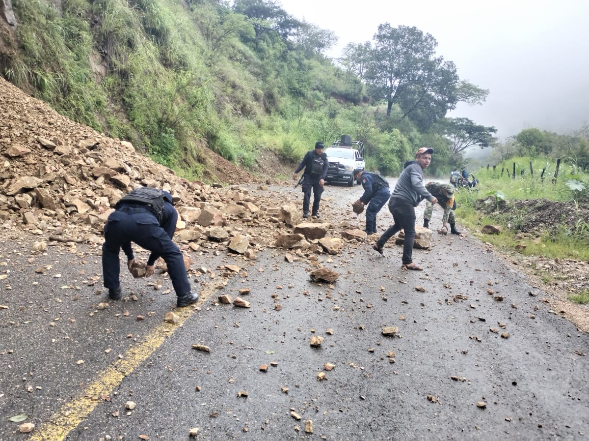 Tras afectaciones de los sismos, SSP, Sedena y Scop, retiran 22 derrumbes, en Chinicuila y Coalcomán