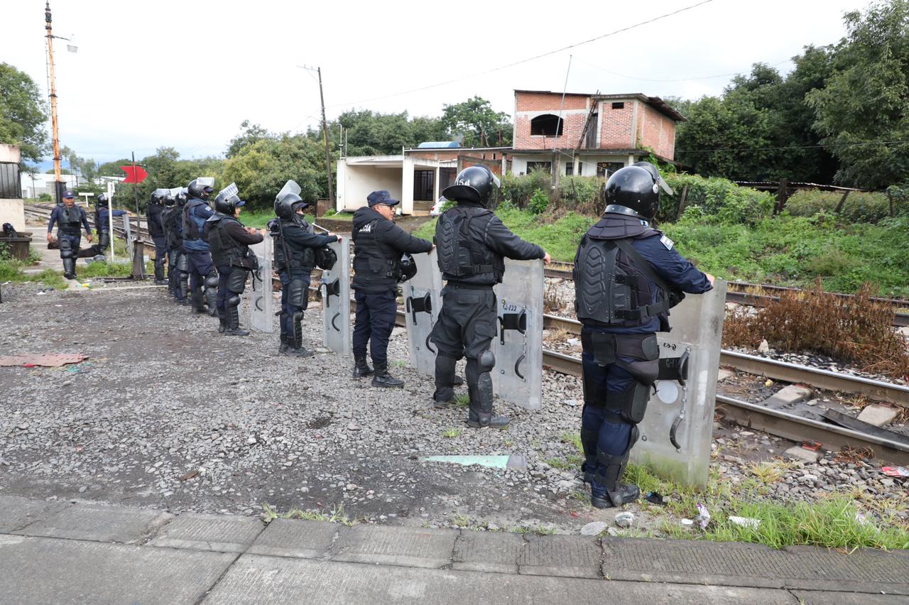 Titular de SSP supervisa operativo para garantizar el libre tránsito del tren en Caltzontzin