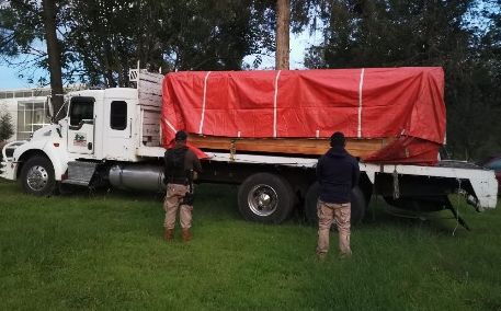 Guardia Civil asegura a uno en posesión de camión cargado con madera ilegal, en Morelia