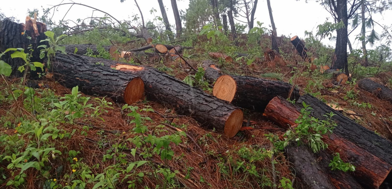 SSP y GN aseguran 98 rollos de madera presuntamente procedentes de tala ilegal, en Zitácuar