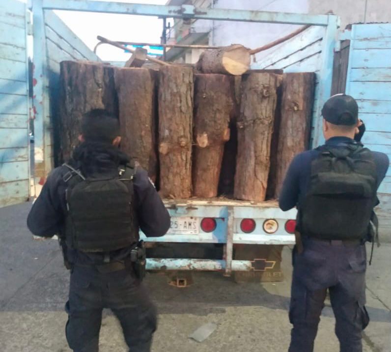 SSP asegura 55 rollos de madera, presuntamente talada de forma ilegal