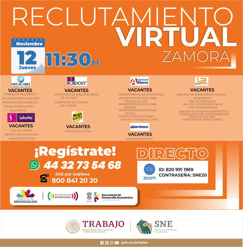 Realizarán Sedeco y SNE actividades a favor del empleo en Zitácuaro y Zamora