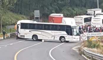 Normalistas retienen por la fuerza autobuses en Michoacán