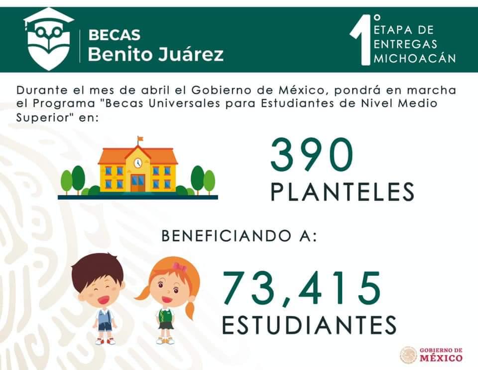 Al 60 por ciento entrega de Becas ‘Benito Juárez’ en Michoacán