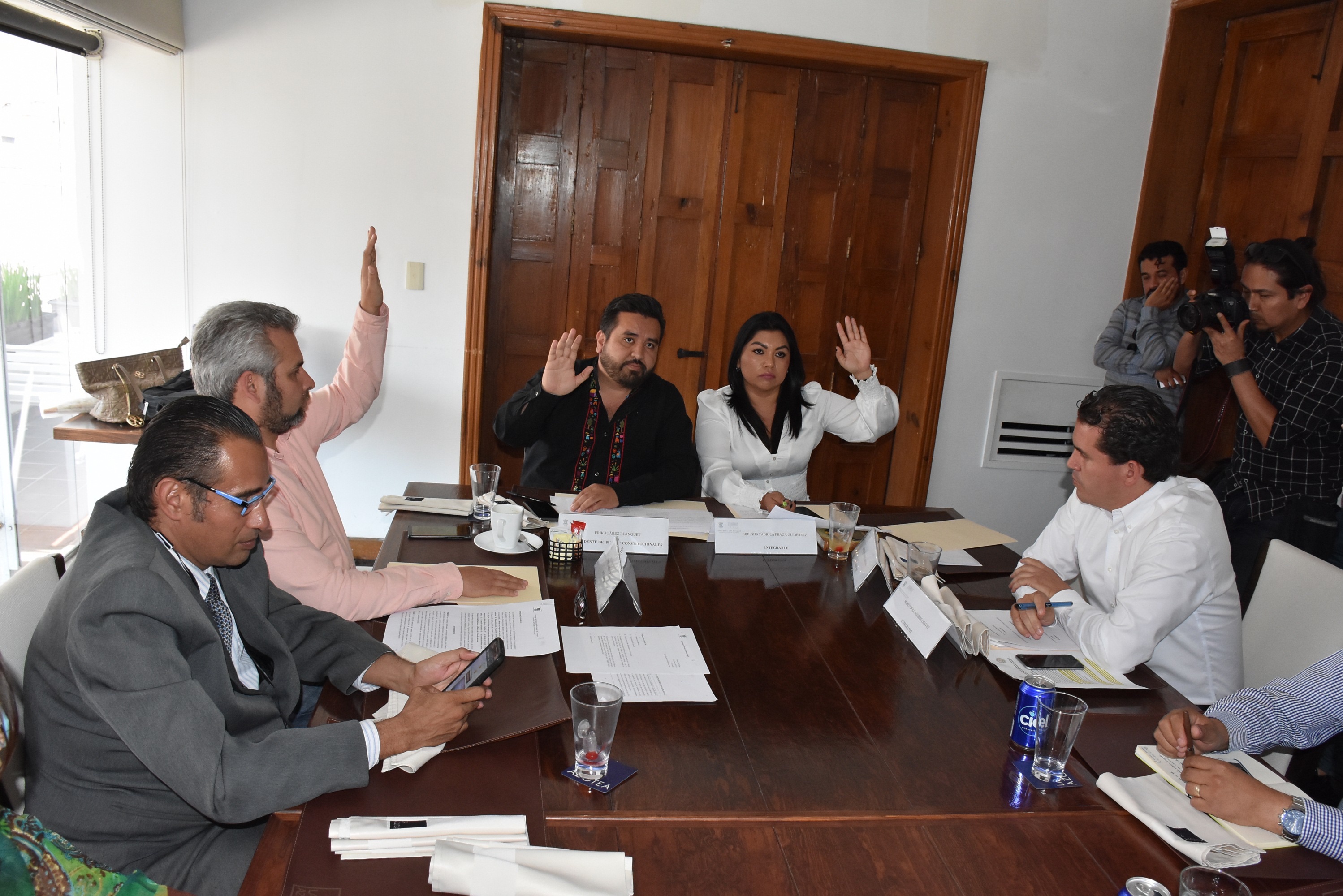 Morelia, Mich., 11 de marzo 2019.- En reunión de trabajo, los diputados Erick Juárez, Alfredo Ramírez, Brenda Fraga y Marco Polo Aguirre, integrantes de la Comisión de Puntos Constitucionales, aprobaron el d ... Leer más >>