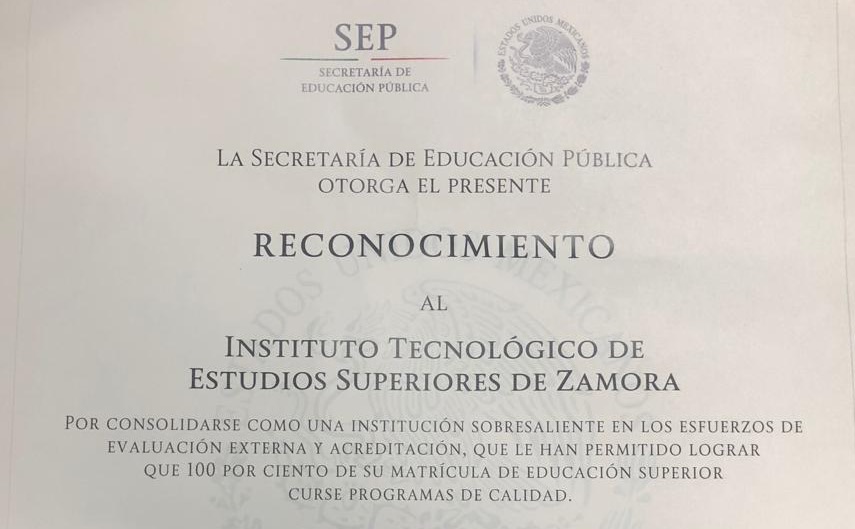 Programas 100% acreditados en calidad para el Tecnológico de Zamora