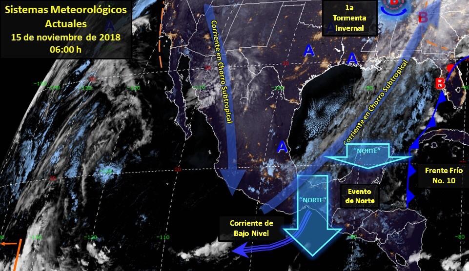 Morelia, Mich., 14 de noviembre 2018.- La presencia del Frente Frío número 10, su intensa masa de aire polar continental y la primera tormenta invernal, originarán onda gélida sobre gran parte del país, i ... Leer más >>