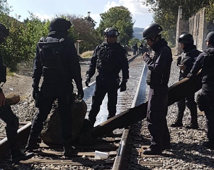 Policía estatal libera vías dei tren en Michoacán