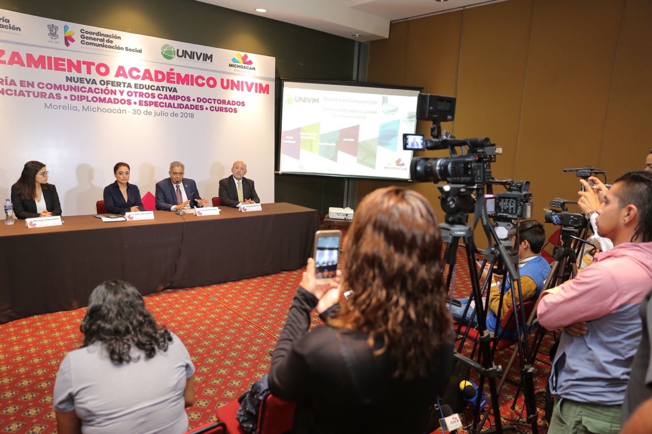 Morelia, Mich., 30 de julio 2018.- La Universidad Virtual de Michoacán y la Coordinación General de Comunicación Social, presentaron esta mañana el Relanzamiento Académico de la Univim, con una nueva ... Leer más >>