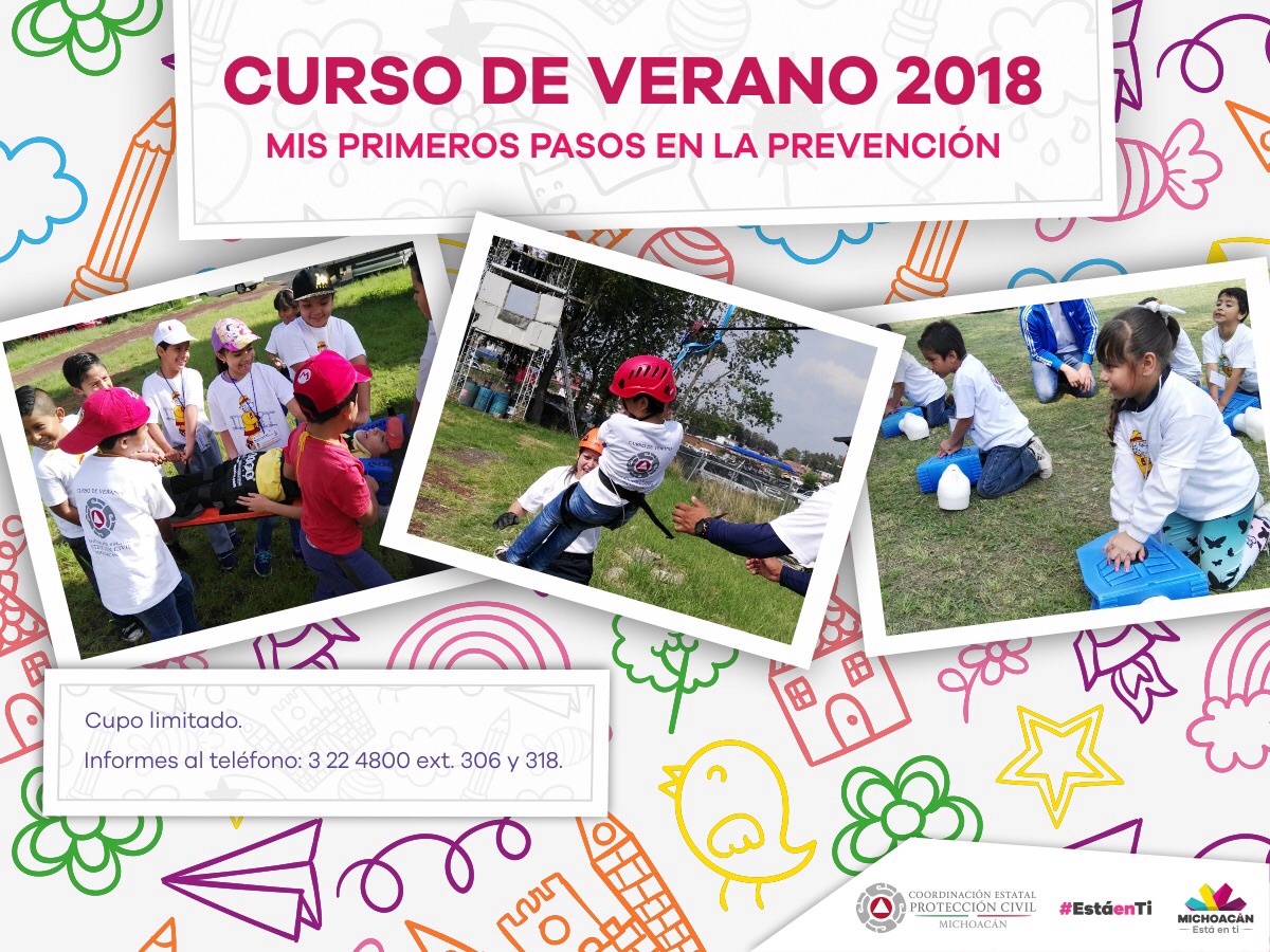 Morelia, Mich., 9 de julio 2018.- En este periodo vacacional, la Secretaría de Gobierno brindará su tradicional curso de verano en materia de protección civil denominado "Mis Primeros Pasos en la Prevención ... Leer más >>