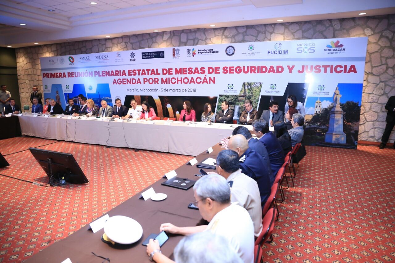 Morelia, Mich., 5 de marzo 2018.- El gobernador Silvano Aureoles Conejo presidió esta tarde la Primera Reunión Plenaria Estatal de Mesas de Seguridad y Justicia, donde hizo un llamado a quienes conforman este esfuerzo co ... Leer más >>