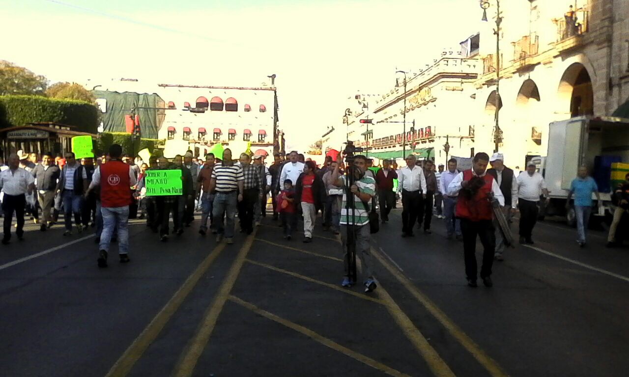 Morelia, Mich., 5 de enero de 2017.- Dos mil transportistas marcharon aquí para exigir que se revoque la determinación del Gobierno federal de incremento al precio de las gasolinas en el país.Con pancartas los transp ... Leer más >>