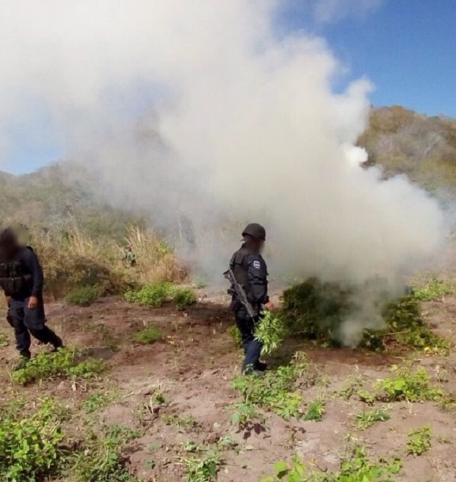 y de la Defensa Nacional (Sedena) aseguraron e incineraron un plantío