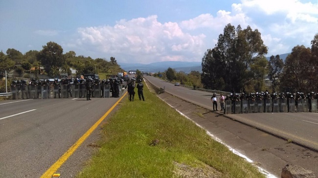 de Michoacán se enfrentaron con policías antimotines cuando bloqueaban