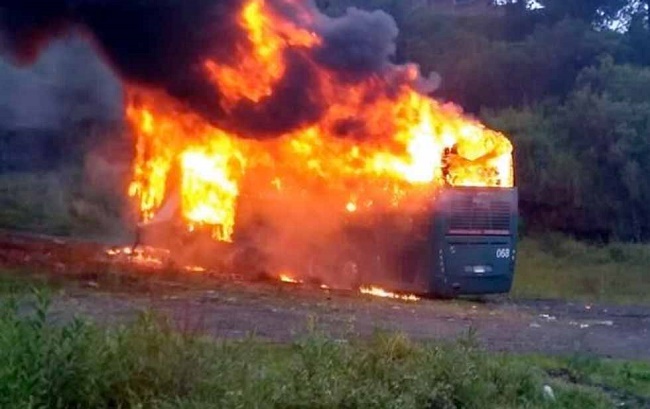 del estado de Michoacán incendiario un autobús de transporte público de