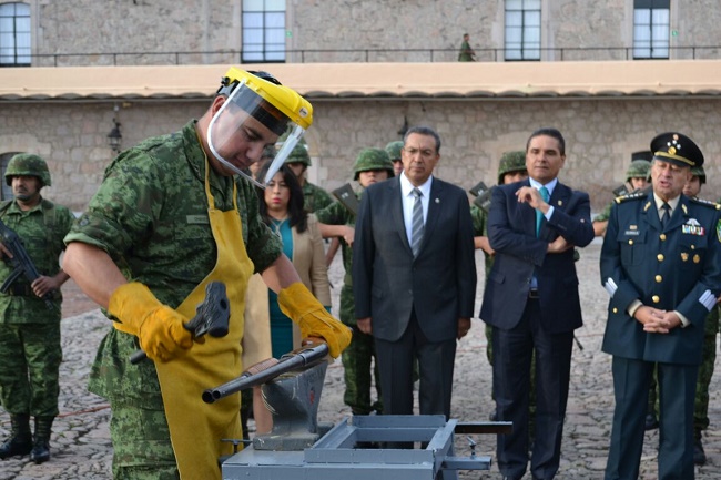 SSP y SEDENA aseguran armamento en Apatzingán