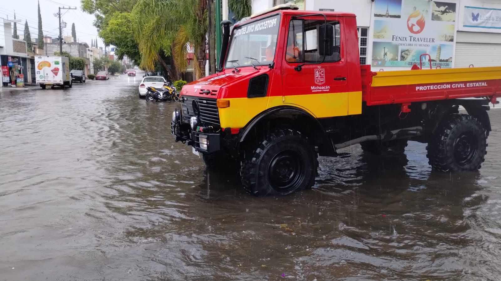Zonas inundadas y cierres viales tras intensa lluvia en Morelia, Michoacán