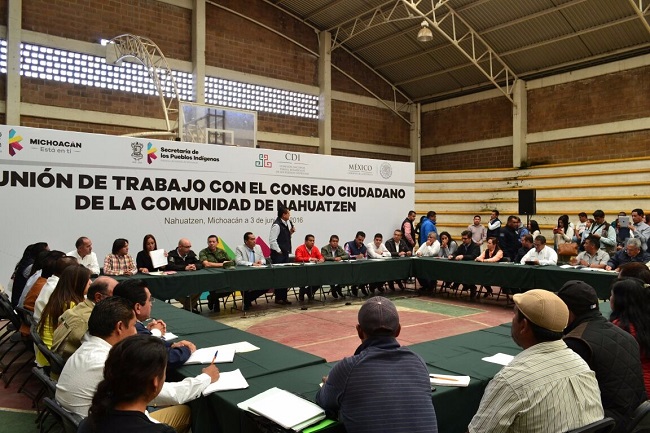 Silvano Aureoles dialoga con miembros del Consejo Ciudadano de la comunidad en Nahuatzen