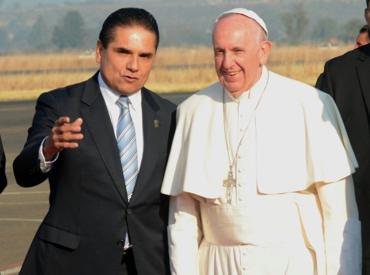 Silvano Aureoles recibe al Papa Francisco en Michoacán