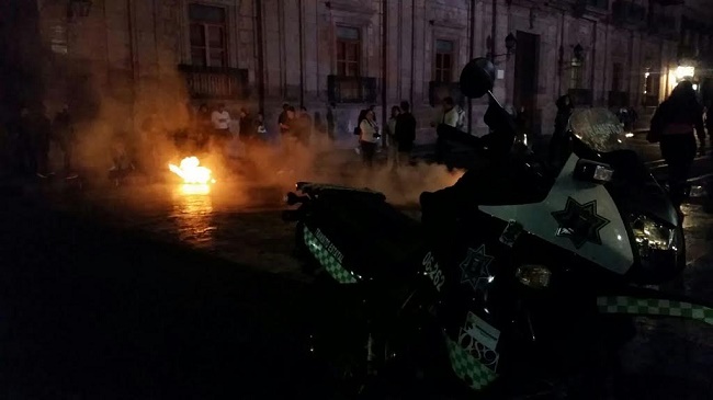 Queman llantas estudiantes en el exterior de Palacio de Gobierno en Morelia