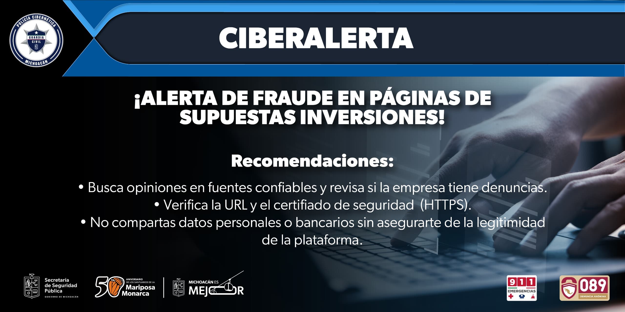 Morelia, Michoacán, a 05 de febrero de 2024.- En la actualidad existen múltiples formas de ser víctimas de ciberdelitos que ponen en riesgo el patrimonio propio y familiar, por ello, la Secretaría de Seguridad Pública ... Leer más >>