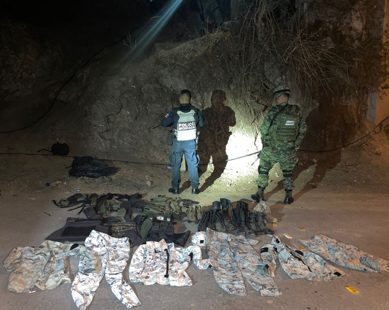 SSP y Sedena aseguran dos vehículos y equipo táctico en Zitácuaro