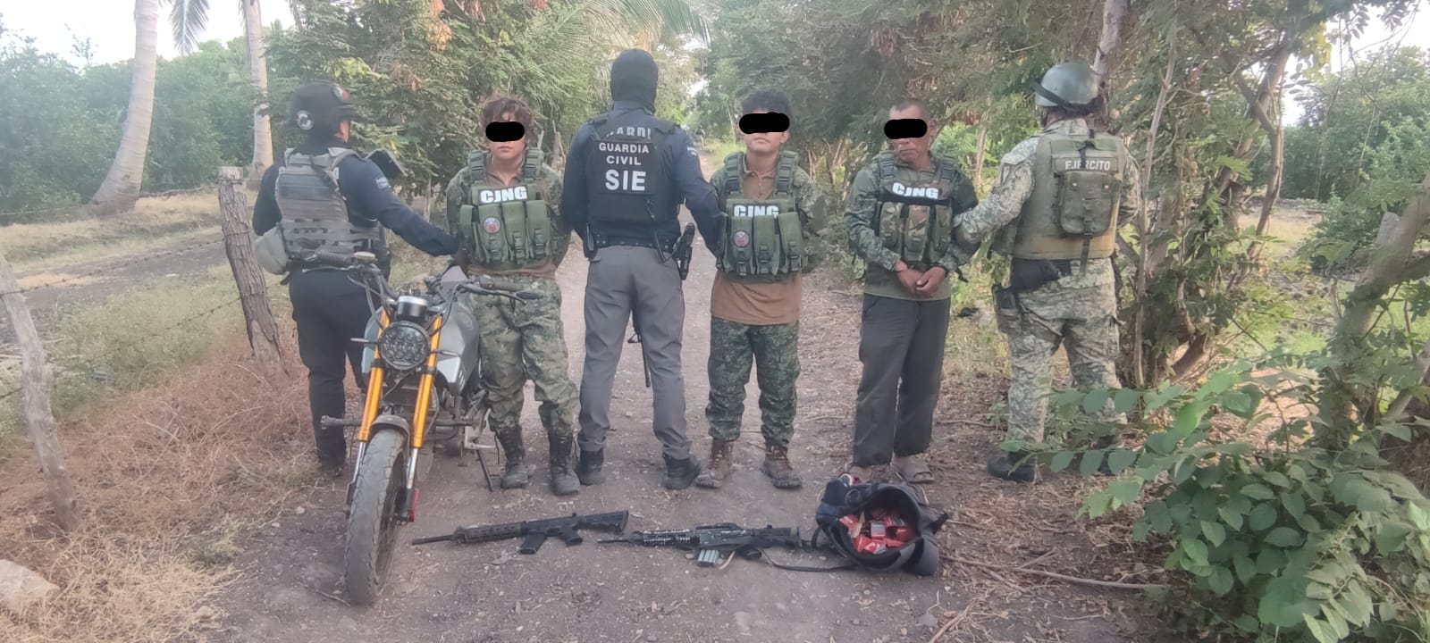 Detienen a siete presuntos criminales y aseguran armamento en Apatzingán, Michoacán