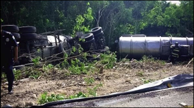 Choque de pipa con ácido fosfórico deja dos muertos en Michoacán