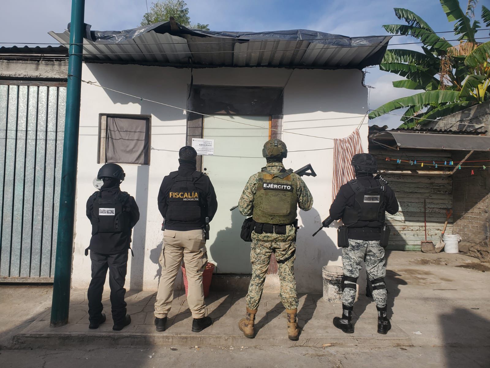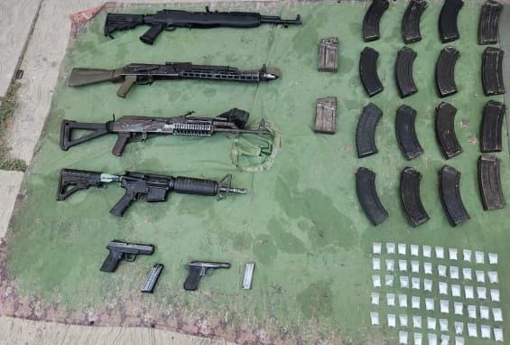 Aseguran armas y droga en Apatzingán, Michoacán