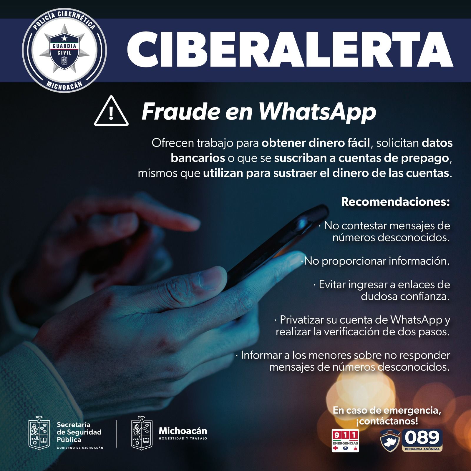 SSP emite alerta por ciberfraude en WhatsApp