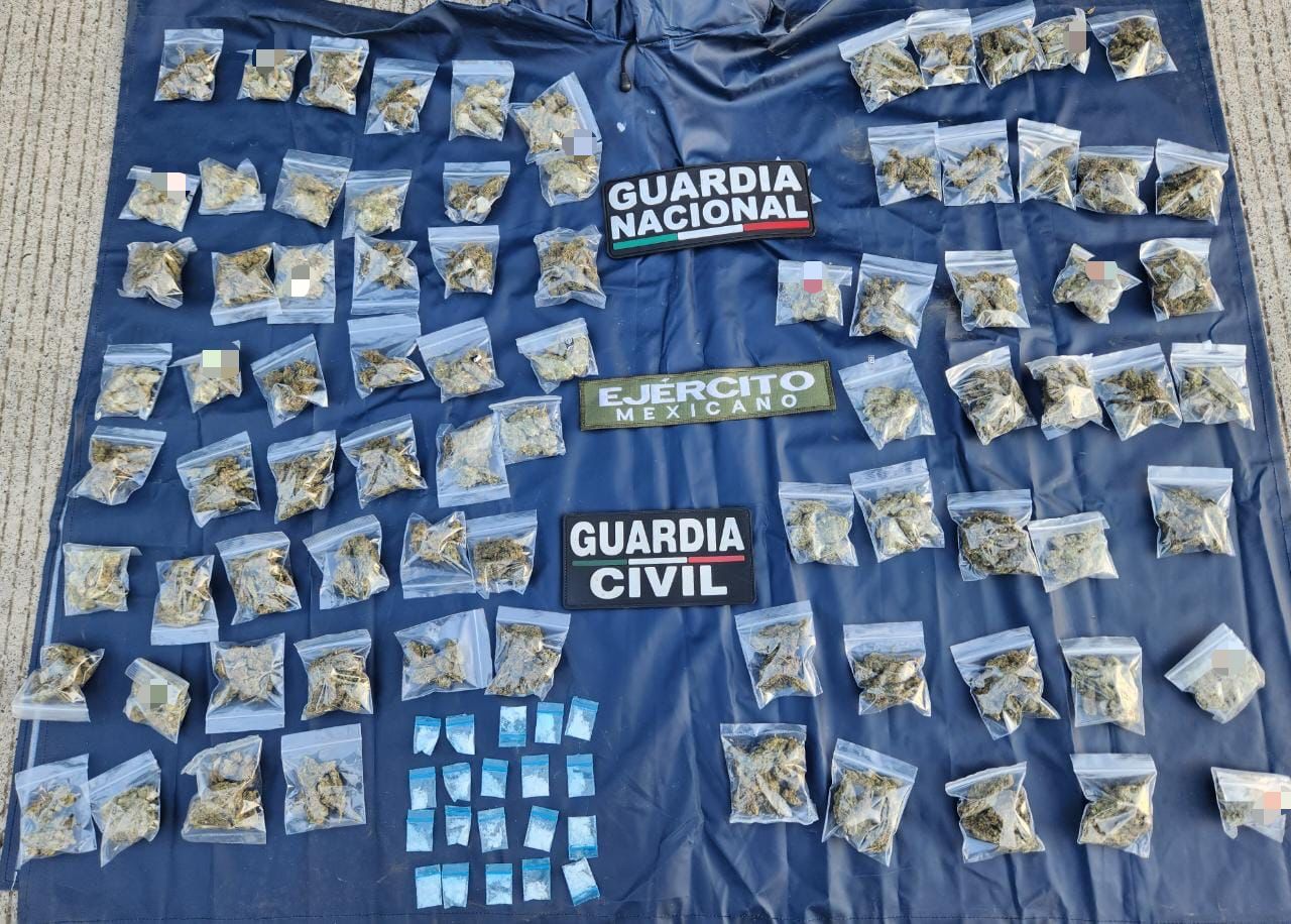 En operativo conjunto, SSP y Sedena aseguran un kilo de metanfetamina y un arma larga