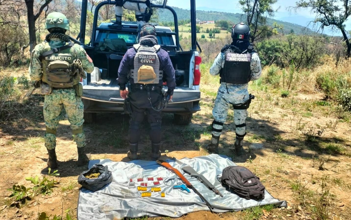 SSP, Sedena y GN localizan arma de fuego, municiones y explosivos: en Apatzingán