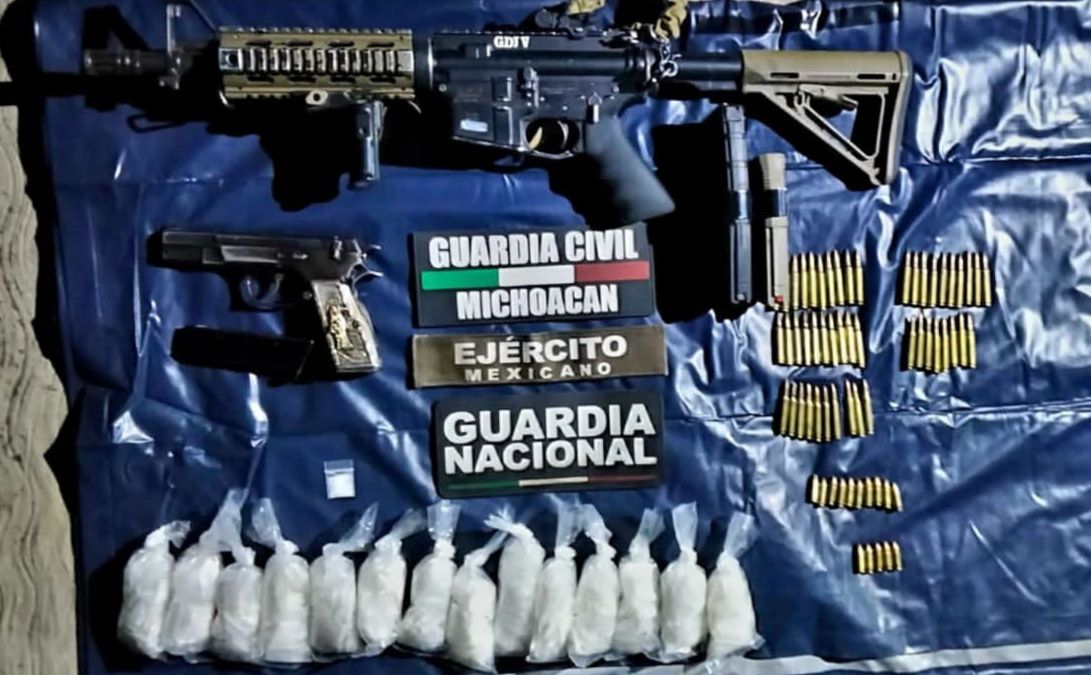 Detienen a uno en posesión de arma y droga en Apatzingán