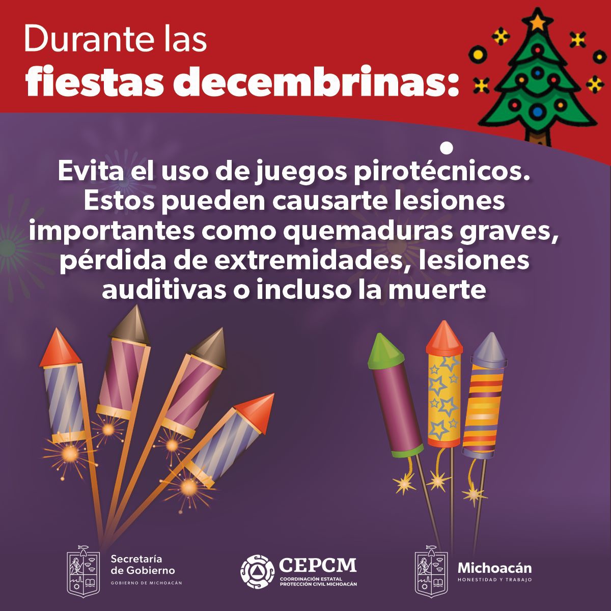 Morelia, Michoacán, a 23 de diciembre de 2022.- En estas fechas de festejos es común que la población compre y utilice objetos pirotécnicos, pero estos son sumamente peligrosos, en especial para las y los menores del hogar, por ... Leer más >>