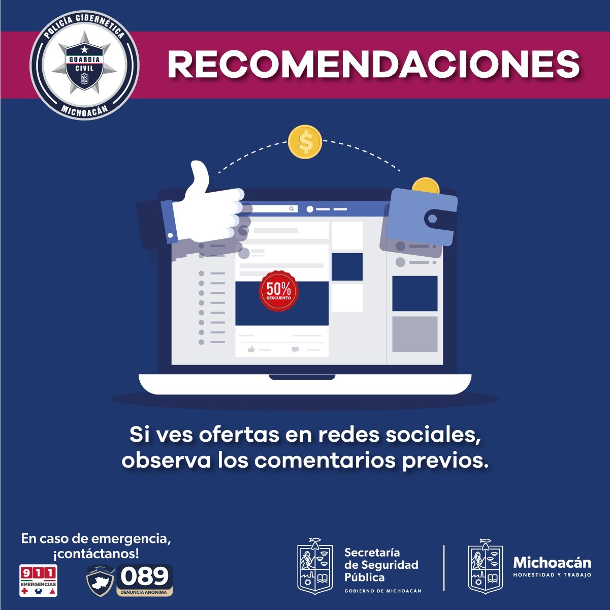 Morelia, Michoacán, a 07 de noviembre de 2022.- En seguimiento al trabajo que la Policía Cibernética perteneciente a la Secretaría de Seguridad Pública (SSP) realiza para evitar que los usuarios de la web sean víc ... Leer más >>