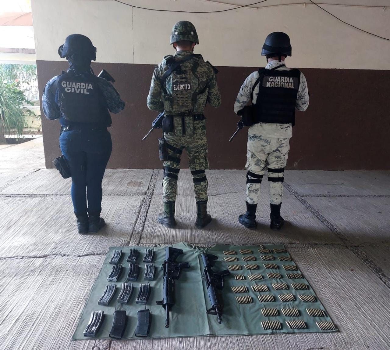 SSP, Sedena y GN aseguran armamento y equipo táctico en Tepalcatepec