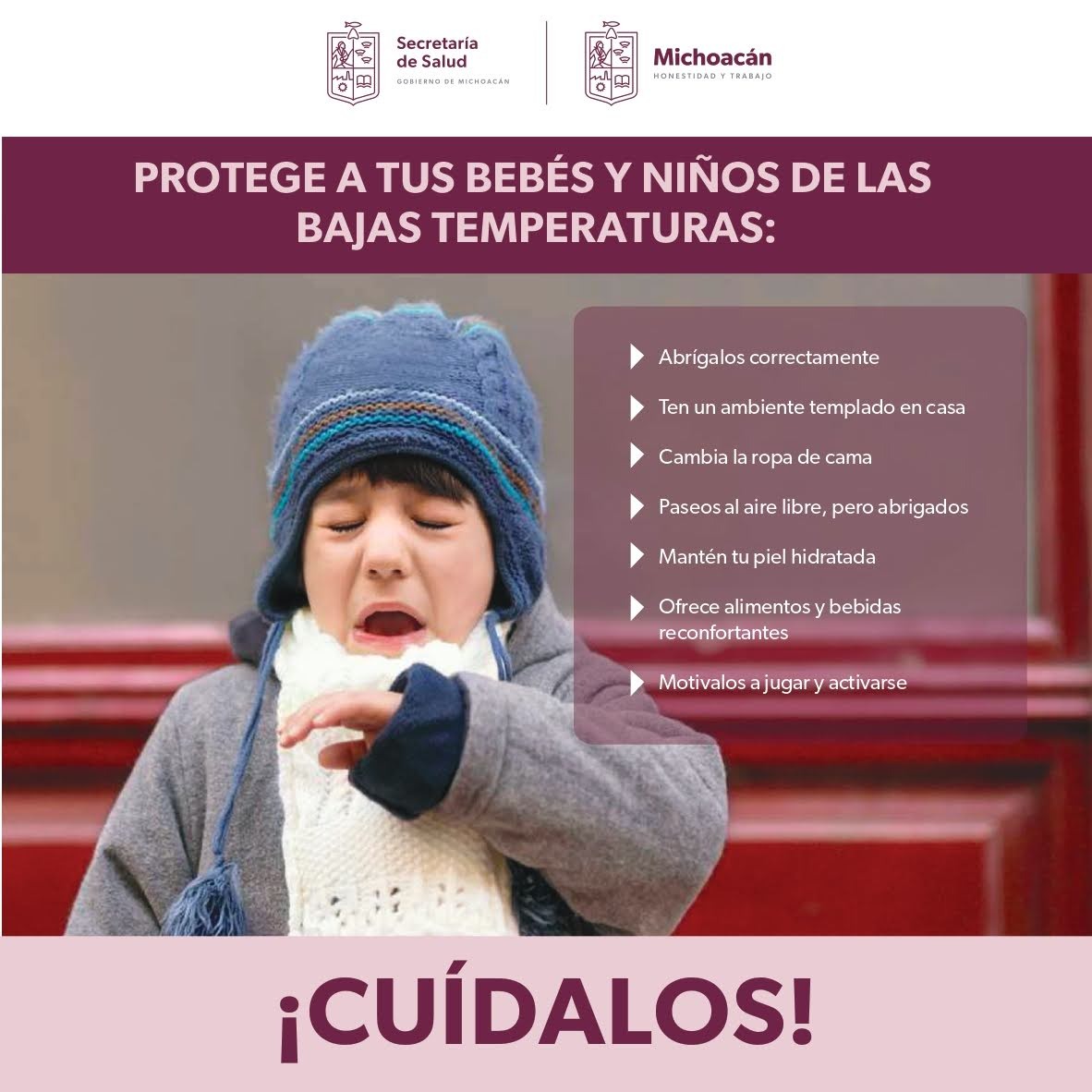 Morelia, Michoacán, a 22 de enero de 2023.- De acuerdo al reporte meteorológico nacional emitido por el Gobierno Federal, derivado del frente frío número 26, Michoacán alcanzará temperaturas mínim ... Leer más >>
