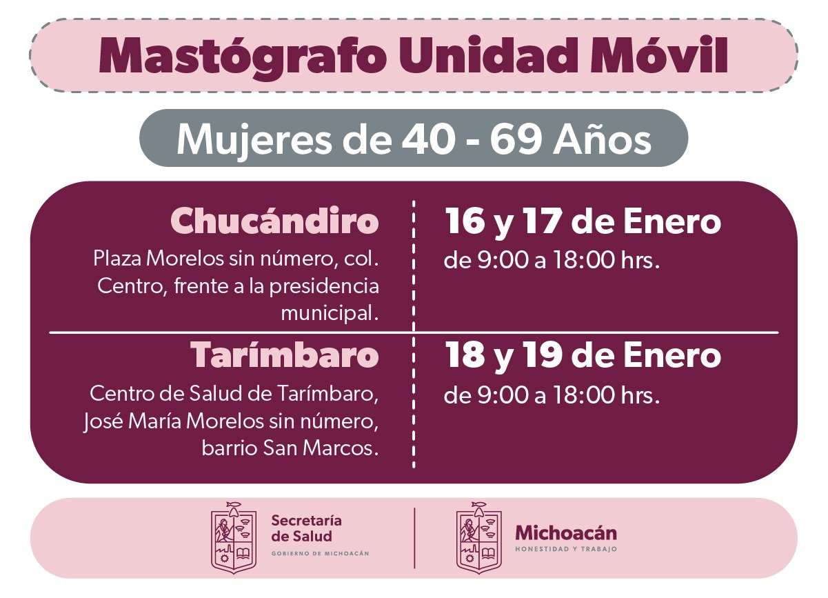 Ofrece SSM mastografías gratuitas en Chucándiro y Tarímbaro