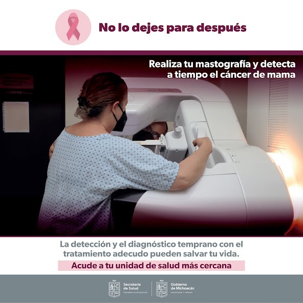 Morelia, Michoacán, a 05 de octubre de 2022.- Una mastografía al año puede salvar la vida de una mujer que pudiera padecer cáncer de mama, por ello, la Secretaría de Salud de Michoacán (SSM) invita a la poblaci& ... Leer más >>