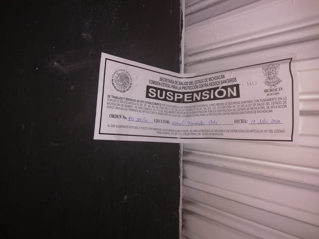Suspenden 5 establecimientos en Morelia por no cumplir con protocolos sanitarios