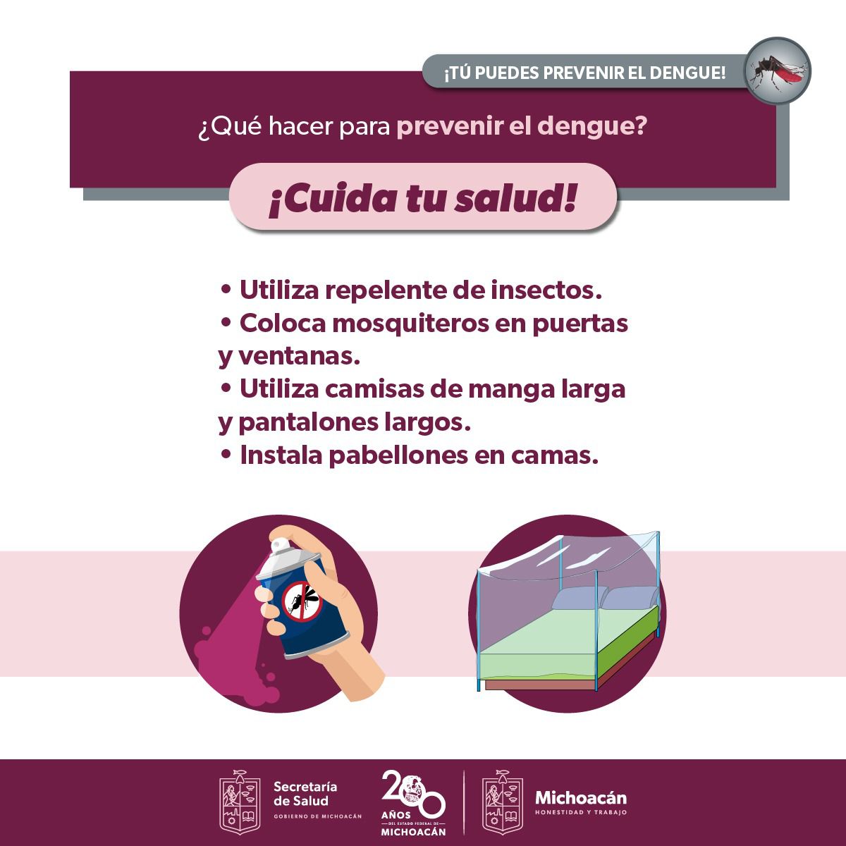 Morelia, Michoacán, a 21 de junio dee 2024.- En temporada de lluvias, la Secretaría de Salud de Michoacán (SSM) exhorta a la población a no bajar la guardia en la prevención del dengue, zika y chikungunya. Para ello r ... Leer más >>